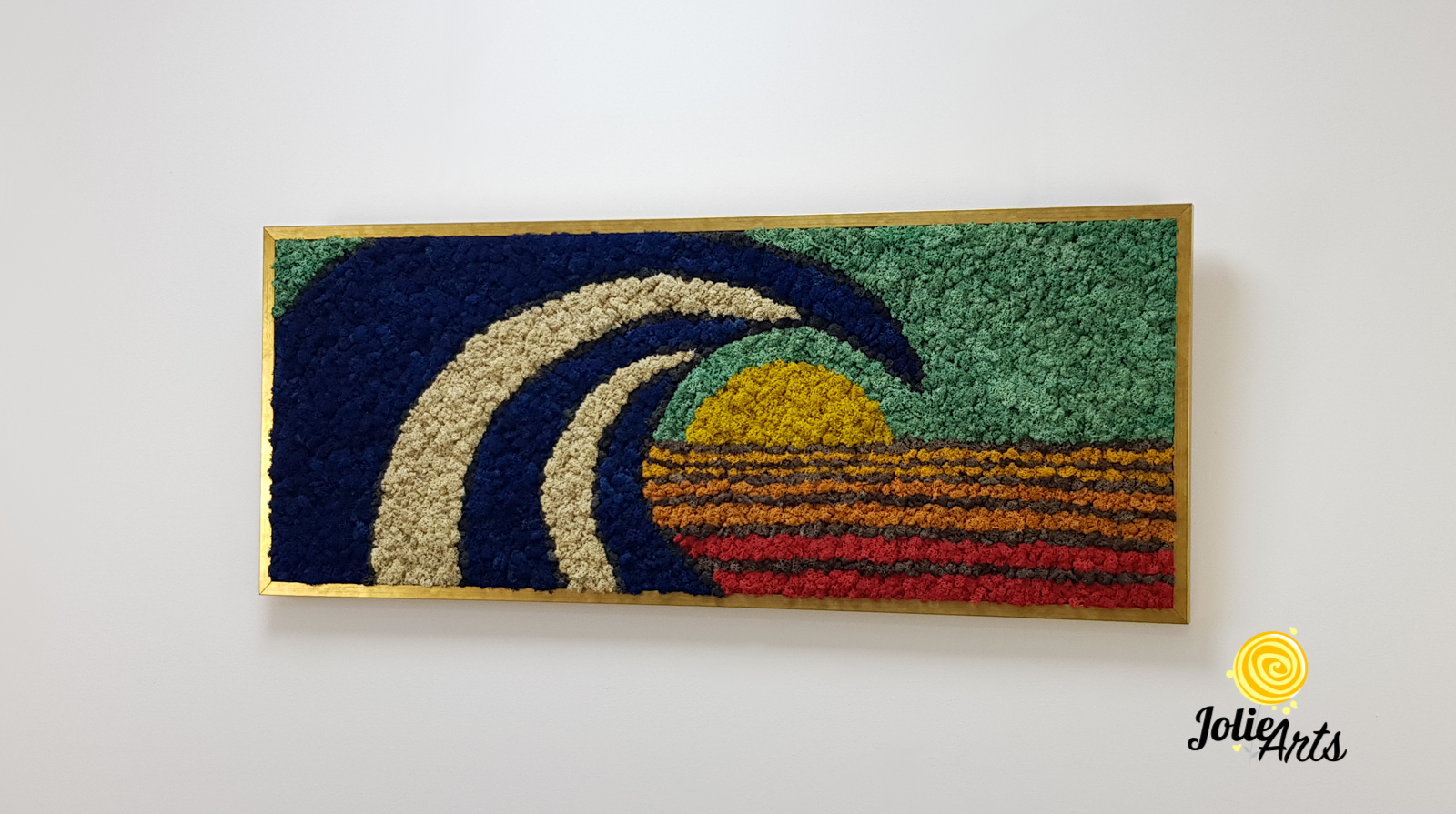 Modelul Waves este inspirat din forța, fluiditatea și armonia pe care le regăsim în natură, evocând dinamica unui peisaj cu valuri stilizate. Acest tablou cu licheni naturali stabilizați este lucrat manual și combină cu rafinament culori vibrante de verde, galben, roșu, albastru royal și nuanțe natur, creând o compoziție modernă și spectaculoasă.