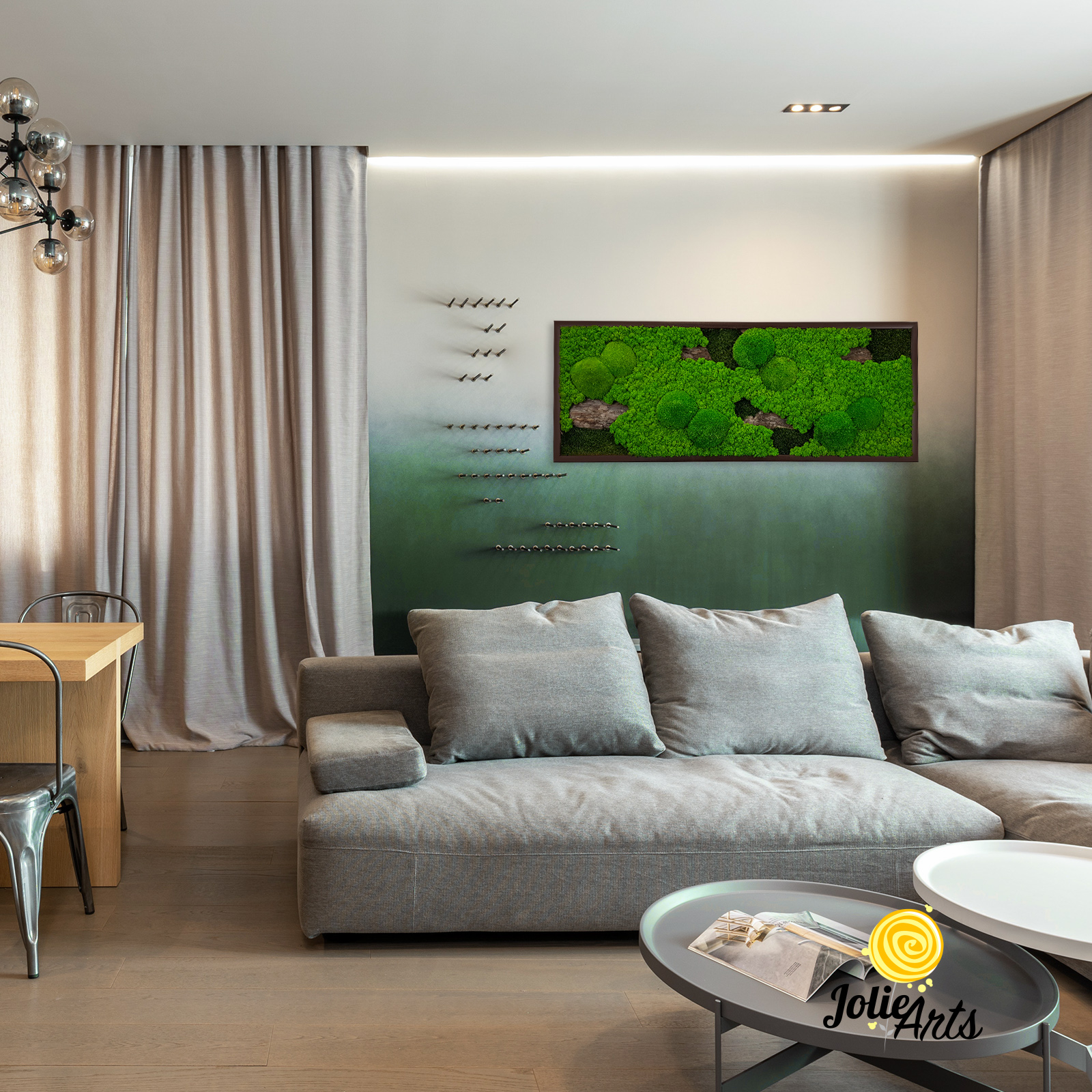 Acest tablou aduce un colț de natură autentică direct în spațiul tău, fie că este decor rustic, modern sau eclectic. Texturile variate ale scoarței de pin, combinate cu mușchii de pădure și lichenii naturali stabilizați, creează o compoziție vizuală plină de profunzime și detalii fine.