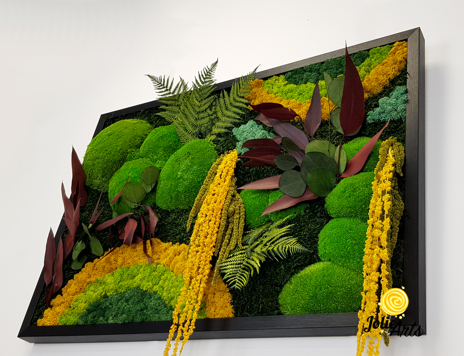 Jolie Arts Tablou Curcubeu Galben cu licheni, mușchi și plante naturale stabilizate - Jolie Arts